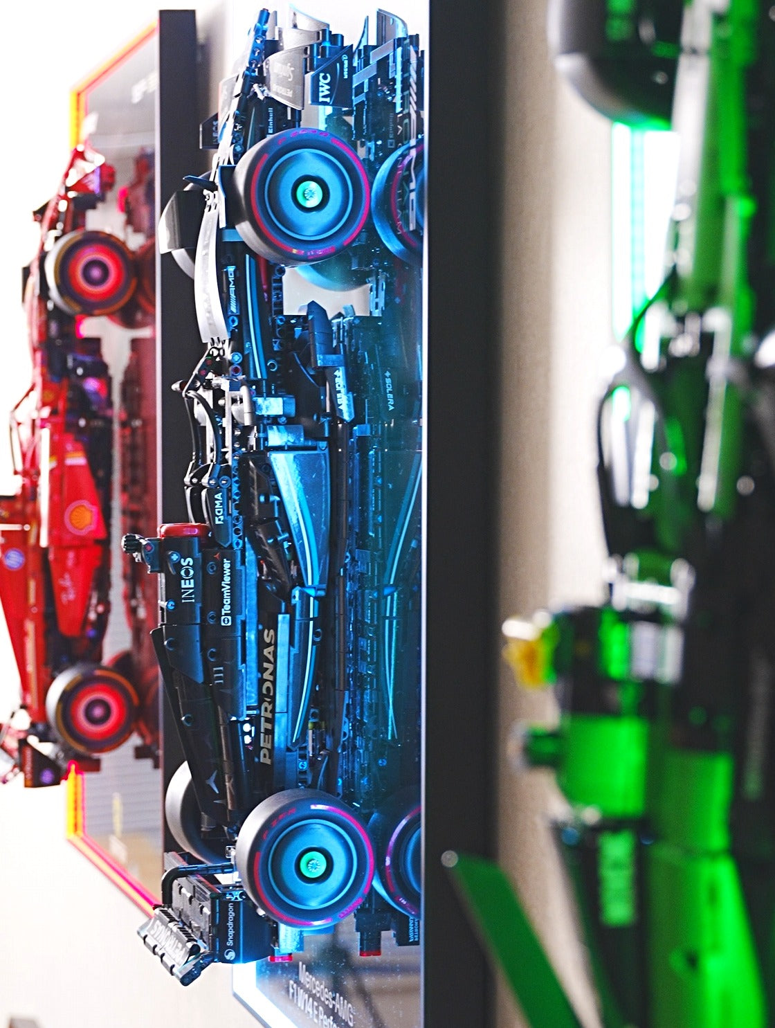 Each purchase includes the premium display frame, the LED kit (if selected), and the mounting hardware. The LEGO® car is NOT included.